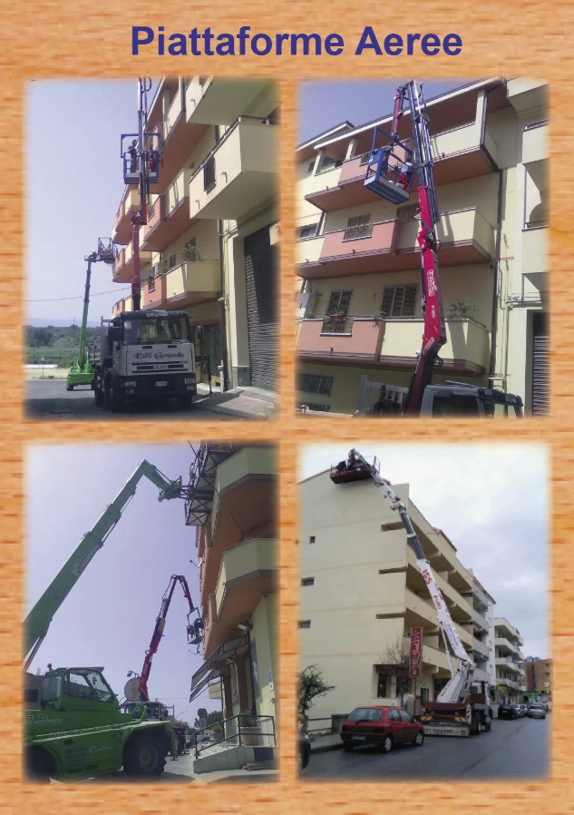 La nostra ditta, situata a Taurianova in provincia di Reggio Calabria, mette a disposizione dei suoi clienti anche un eccellente servizio di noleggio di piattaforme aeree per realizzare una serie di attività in quota come ad esempio: